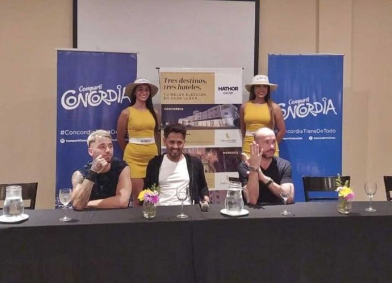 Los integrantes del popular grupo La Konga, Nelson Aguirre, Diego Granadé y Pablo Tamagnini, dieron una conferencia de prensa en la tarde del viernes, en la previa de su presentación en el Corsódromo de Concordia.
