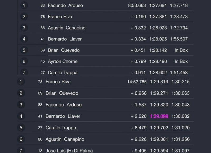 Desde la largada, Riva se adueñó de la posición de privilegio y no soltó la punta hasta la bandera a cuadros. En segundo lugar, arribó Brian Quevedo, mientras que el experimentado Facundo Arduso completó el podio.